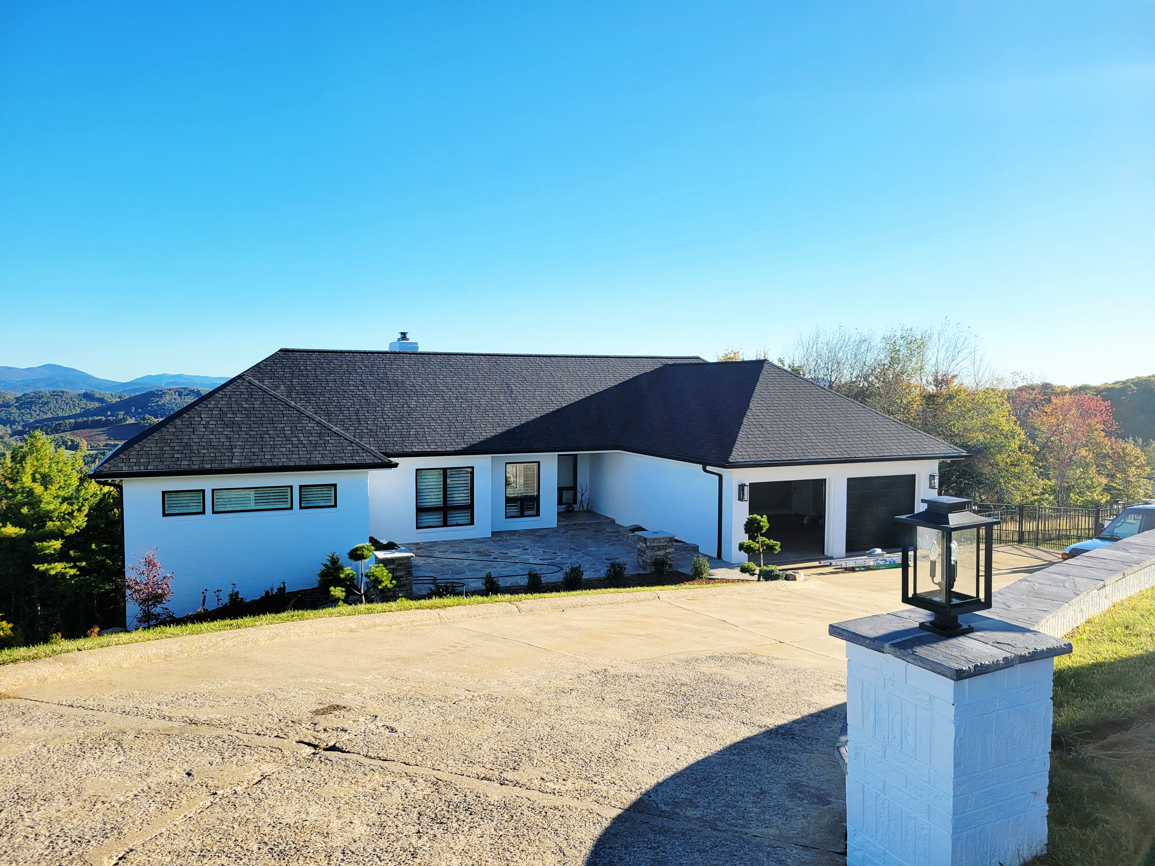 A fully updated home exterior featuring refreshed materials, improved architectural details, and a cohesive design that enhances curb appeal and complements the setting.