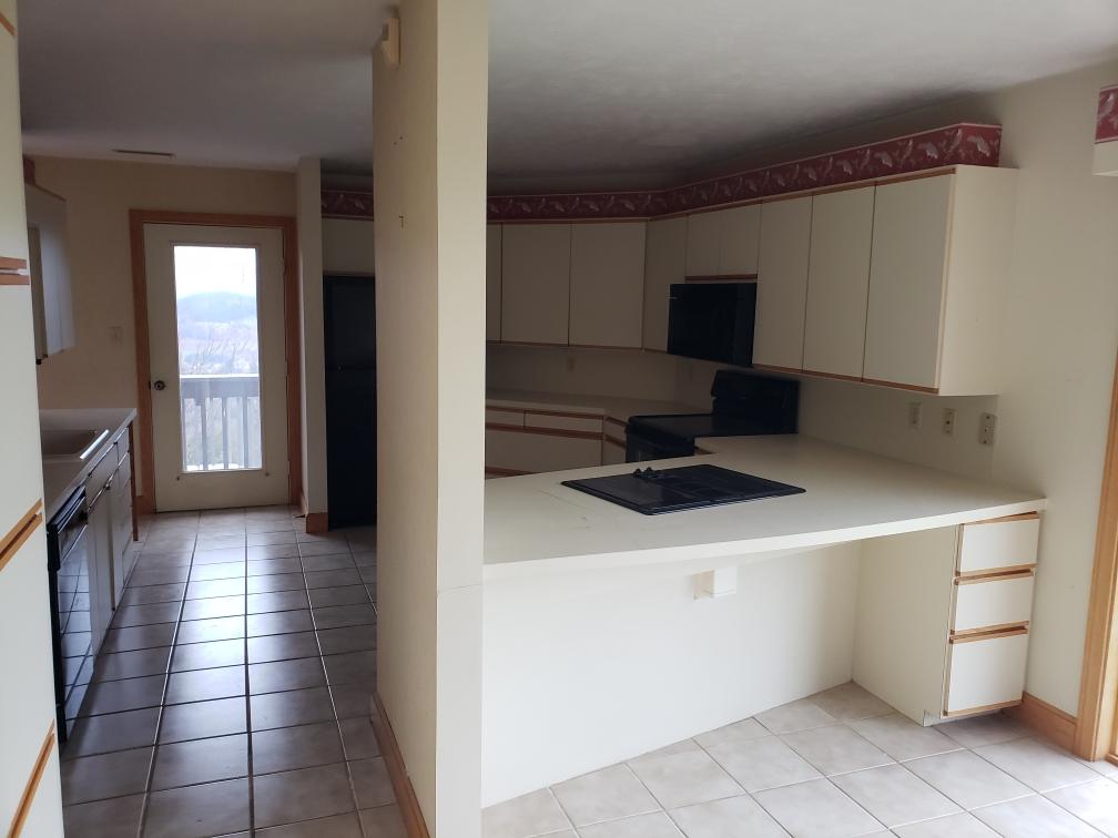 The kitchen prior to renovation, featuring original materials and limited functionality.